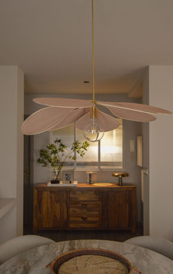 una delicada lámpara de pétalos le da